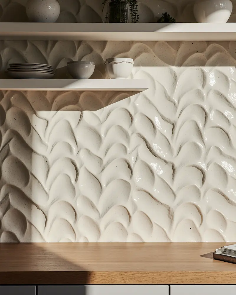 One design I saw had soft waves across the surface, and the way it caught the light? Unreal. Even in a monochrome kitchen, those little ridges and grooves give the space a life of its own.
